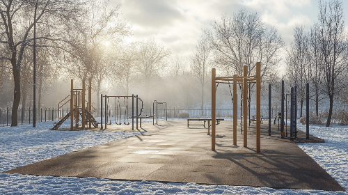 - Морозостойкость: В связи с экстремально низкими температурами зимой необходимо использовать резиновую плитку с высокой морозостойкостью и специальные клеевые смеси, устойчивые к низким температурам.
